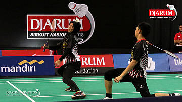Muhammad Juan Elgiffani/Windi Siti Mulyani (PB Victory Bogor) menyambut pengembalian