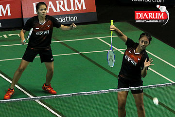 Febby Valencia/Lisa Ayu (Djarum Kudus) Mengembalikan Shuttlecock