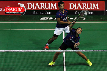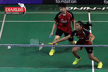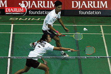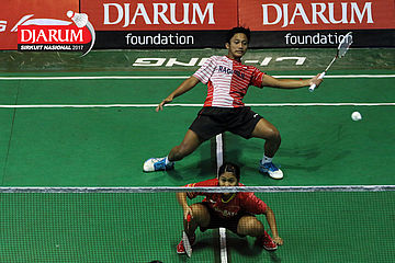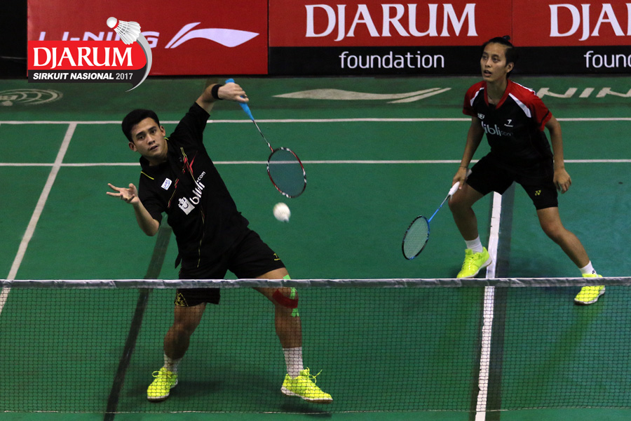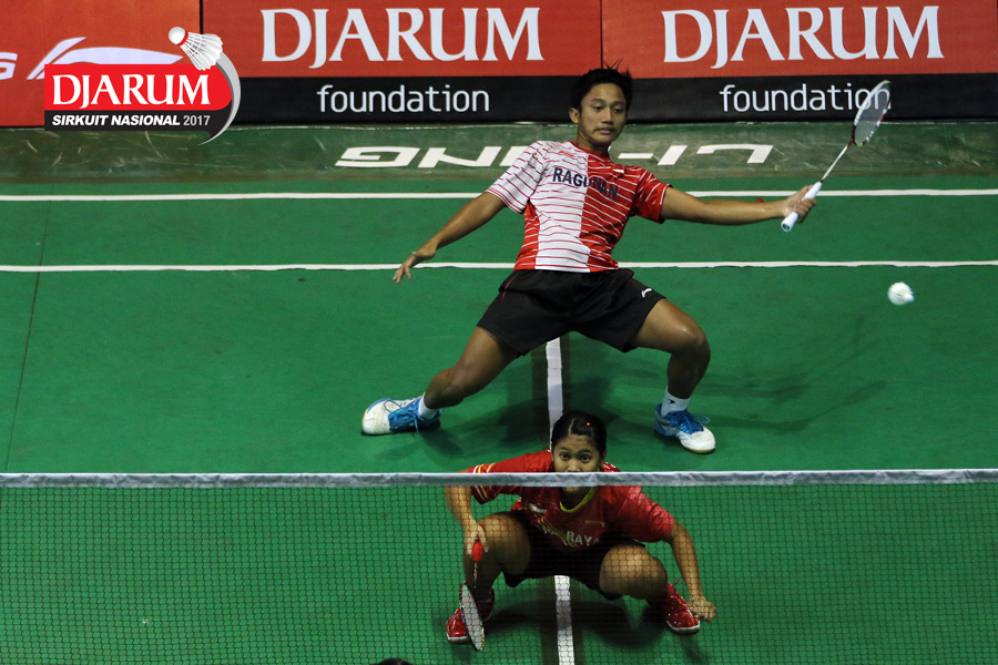 Diki Rafian/Aldira Rizki (Djarum Kudus) Melepaskan Serangan