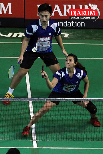 Dwiki Rafian/Aldira Rizki (Djarum Kudus) Bersiap Menyambar Pengembalian