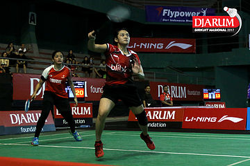 Dian Fitriani/Nadya Melati (Pertamina Fastron) Mengembalikan Shuttlecock