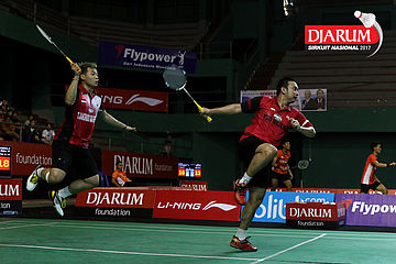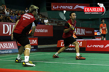 Lukhi Apri/Tedi Supriadi (Djarum Kudus) Menghadang Serangan