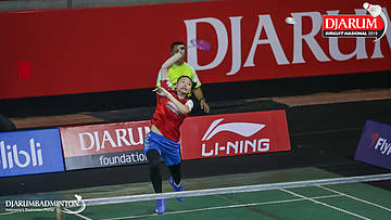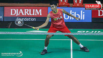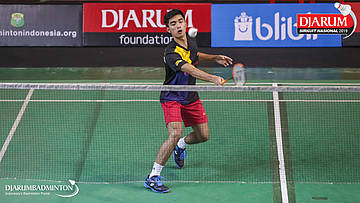 Panji Ahmad Maulana (Daihatsu Candra Wijaya) bersiap menyambut shuttlecock