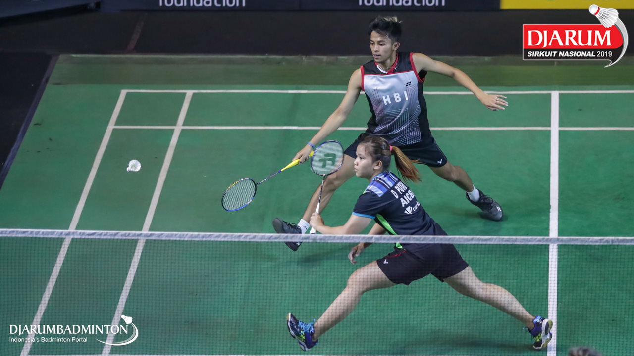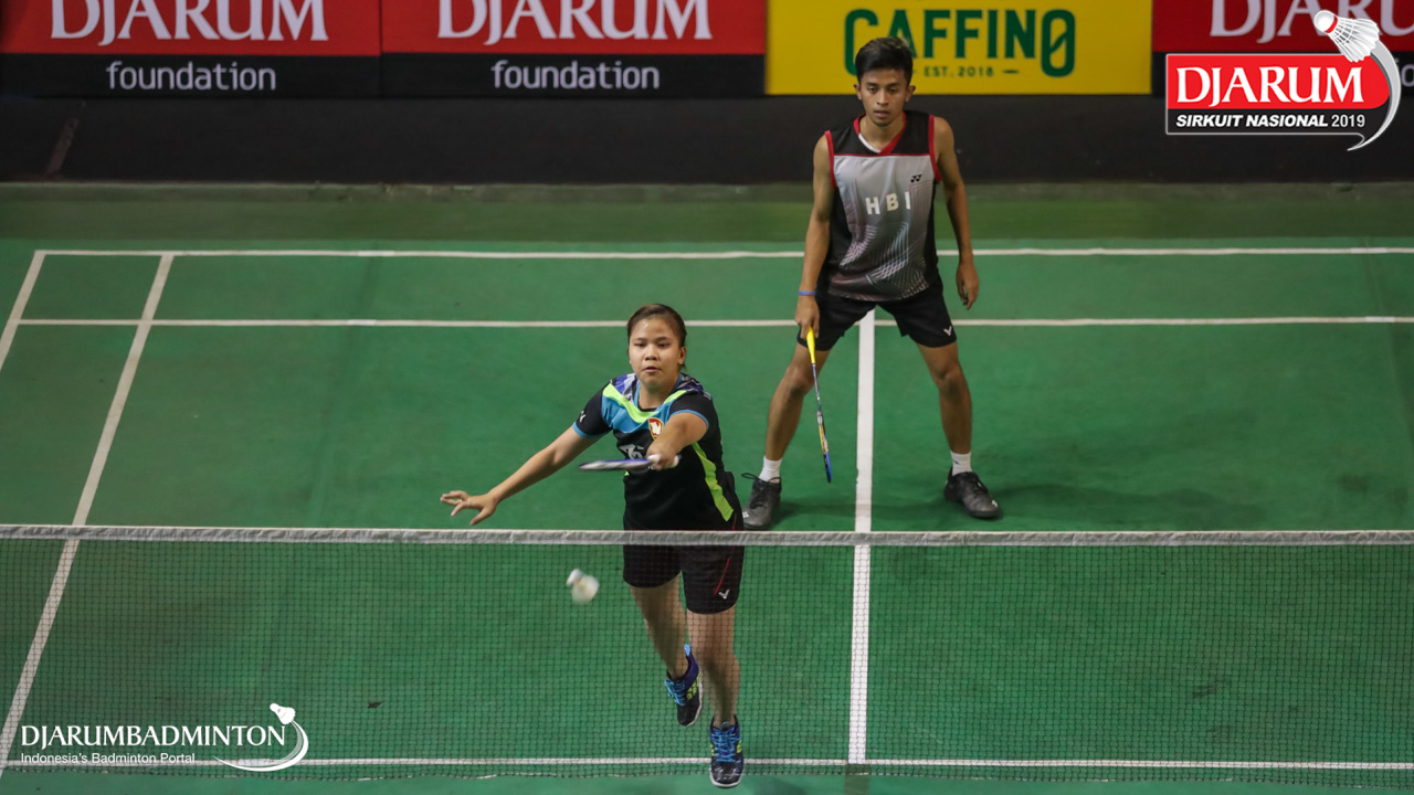 Ihsan Adam Wirawan+Dea Putri Wales (Keshab Timur Samarinda+PB AIC Badminton Academy) bersiap menyambut serangan