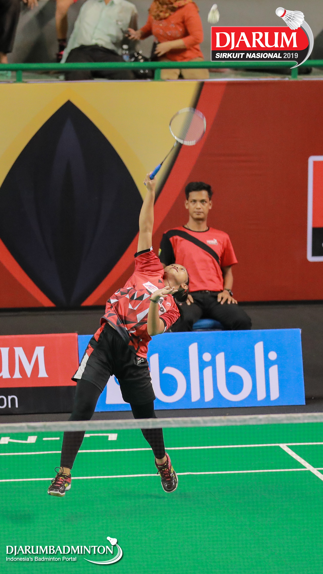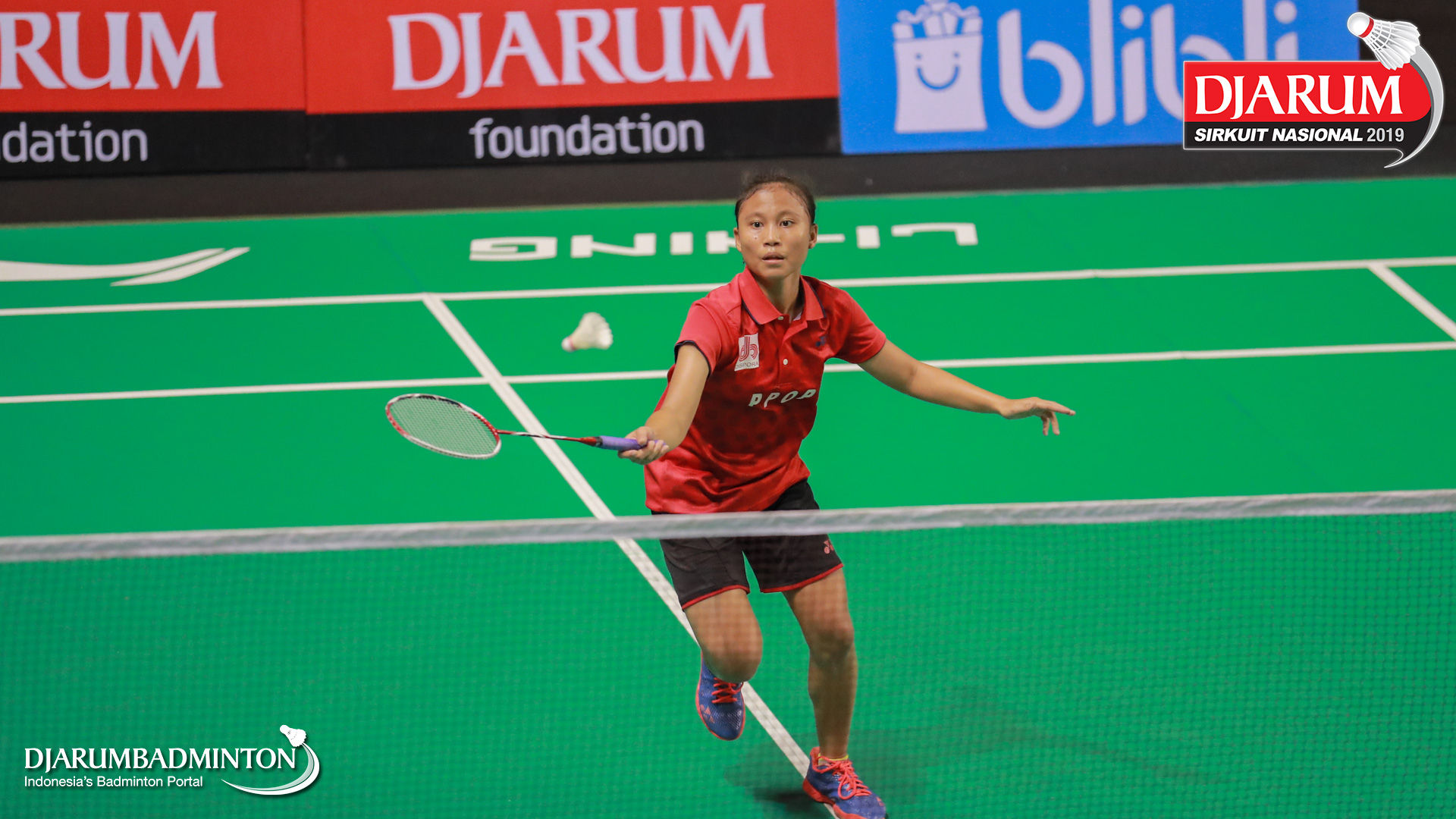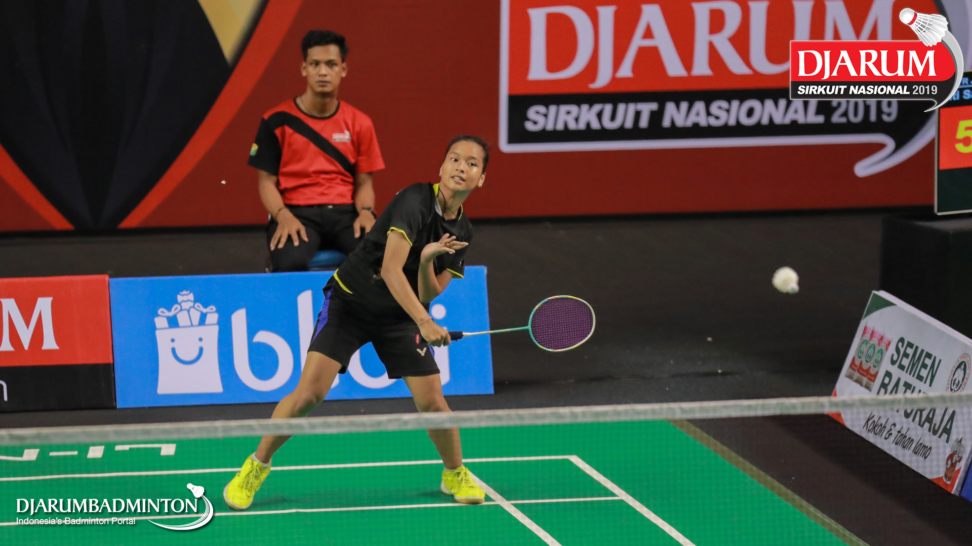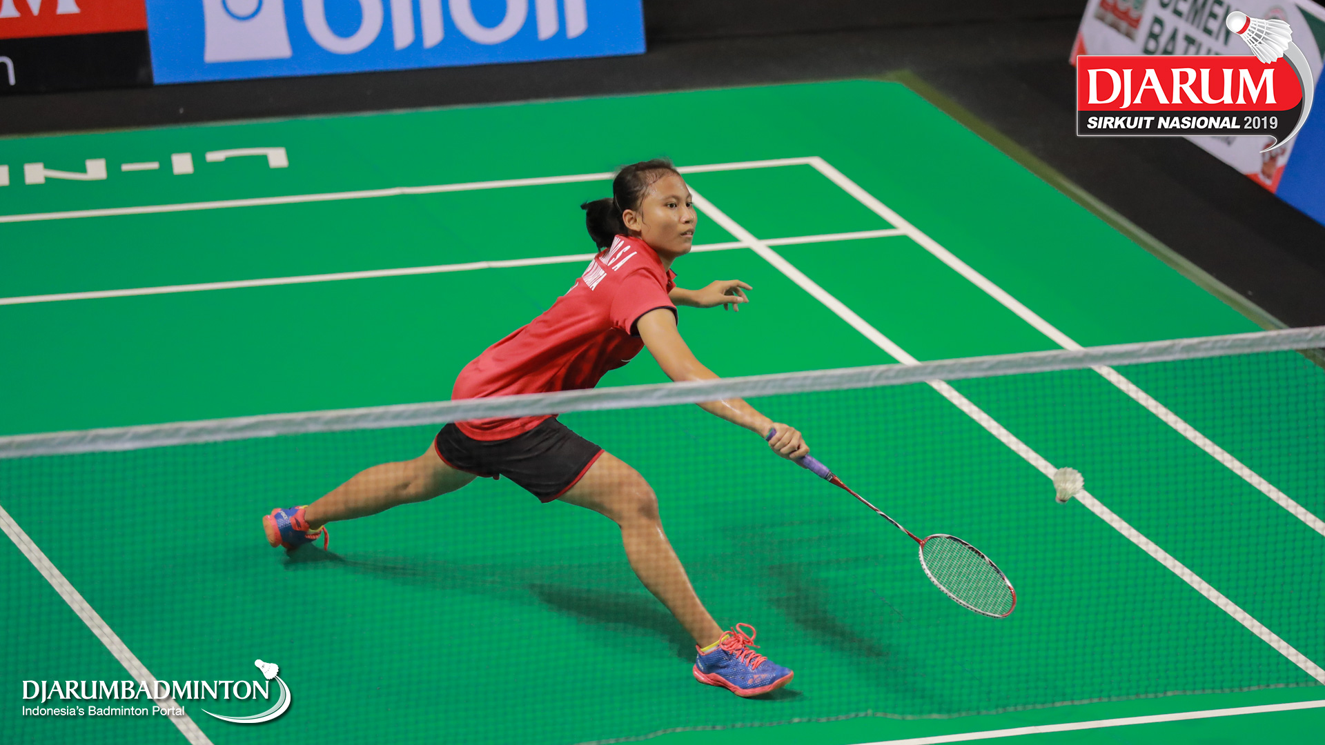 Inne Rahmatia Fauziah (Kaypi Badminton Club, Bogor) mengembalikan serangan