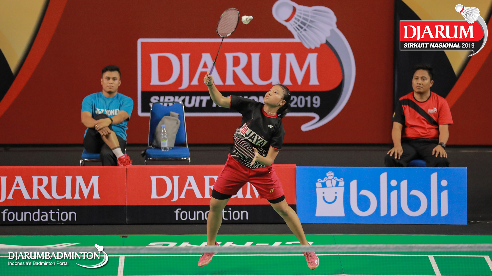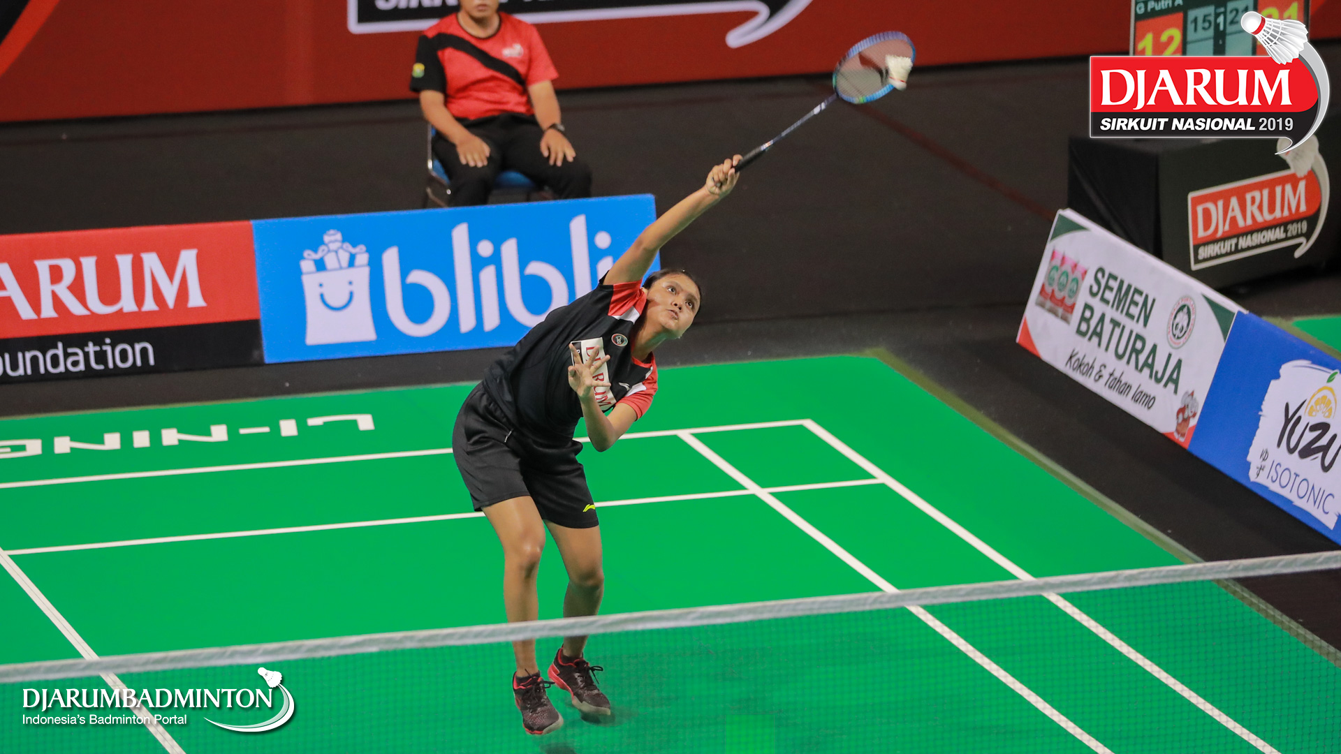 Bilqis Prasista (PB Djarum, Kudus) menyambar shuttlecock