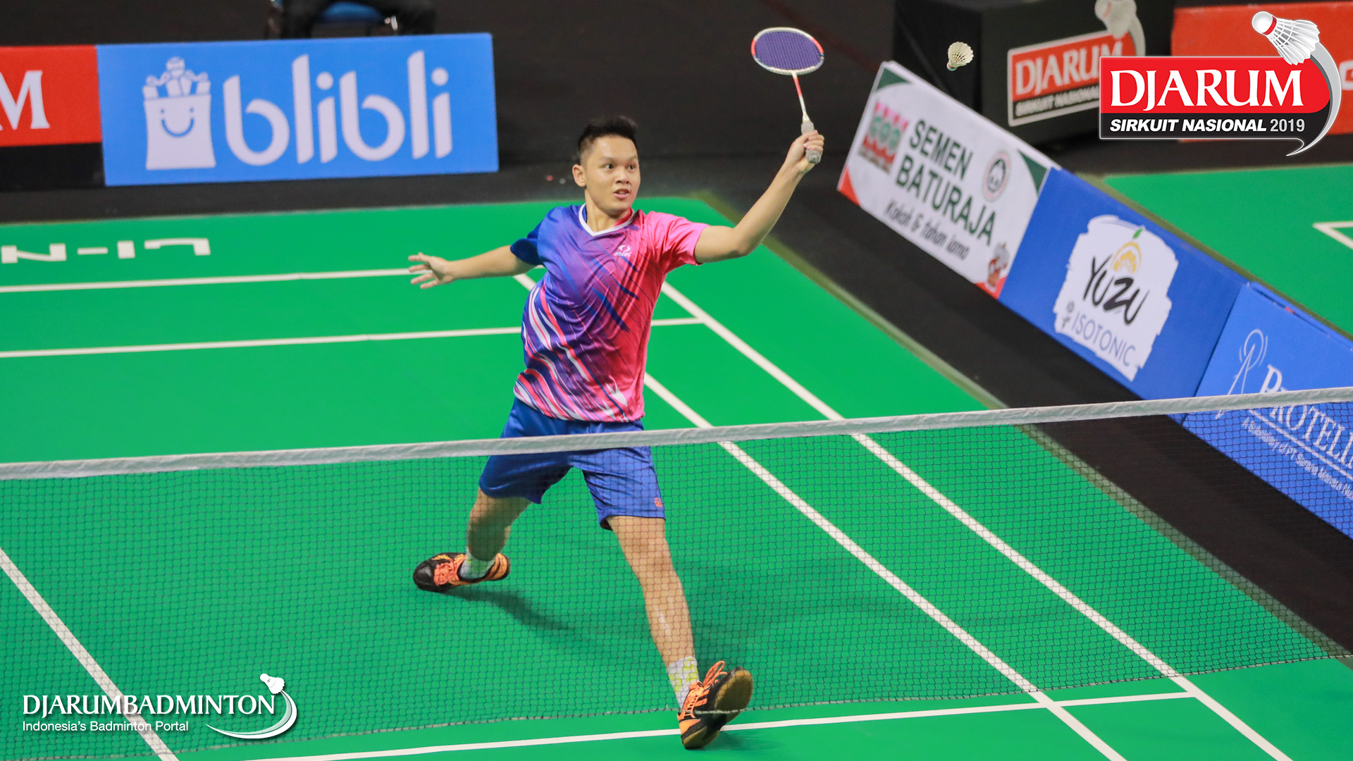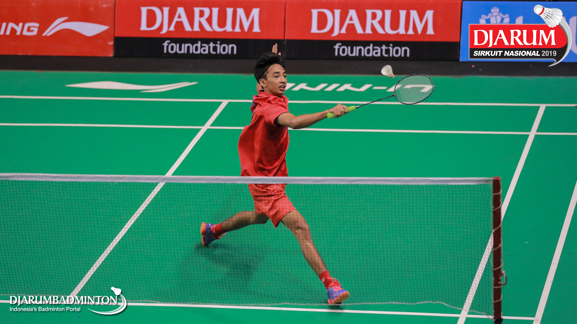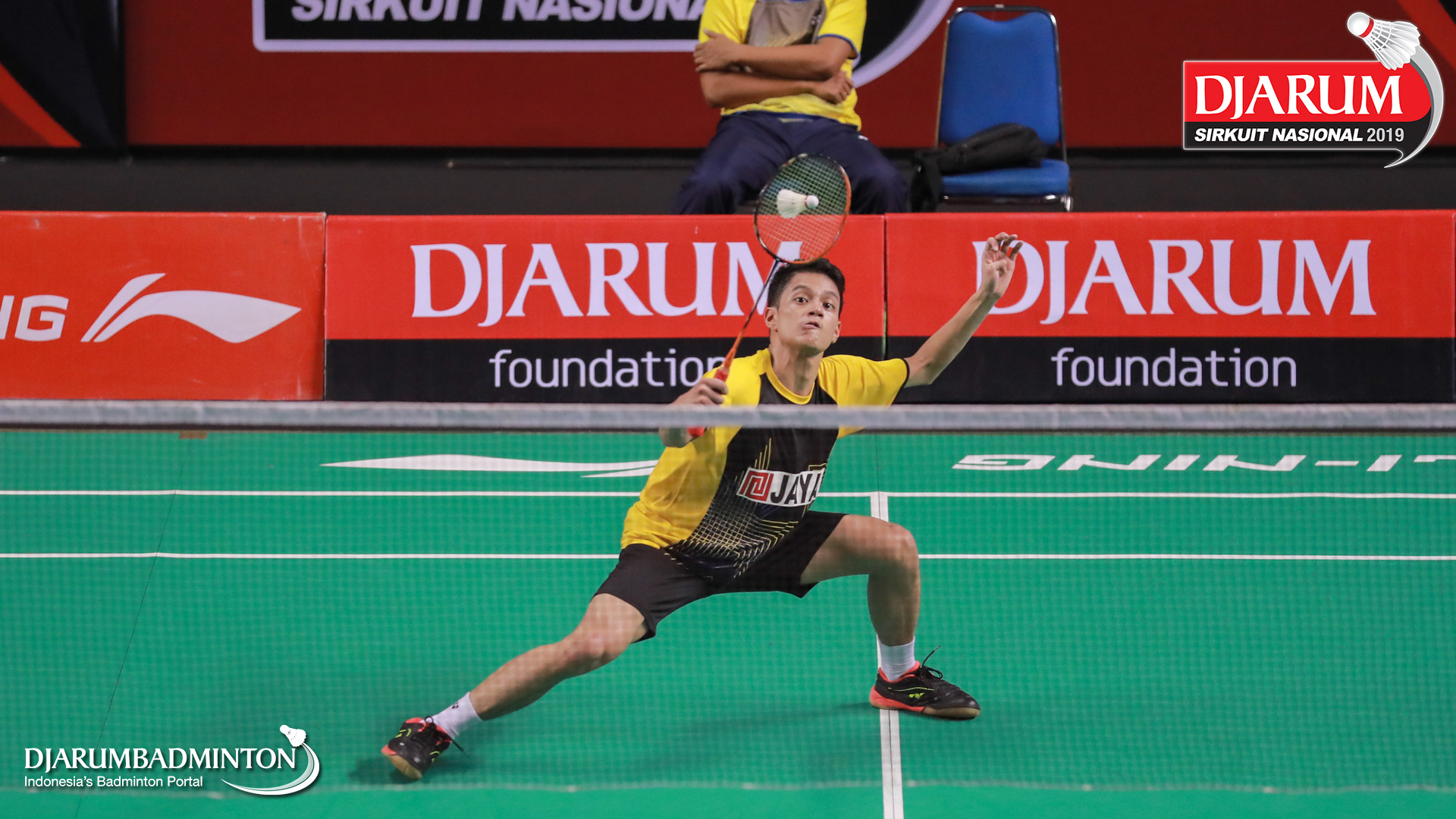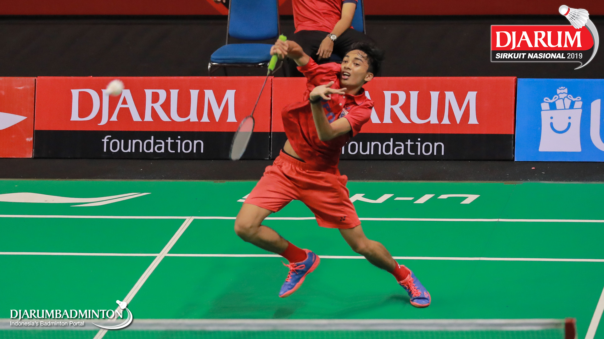 Aivin Setiajaya (Asep Suharno Badminton Academy, Jakpus) melepaskan serangan