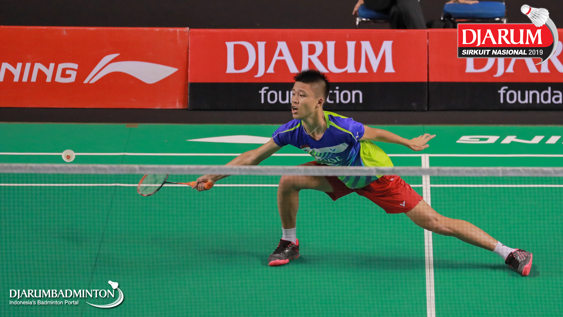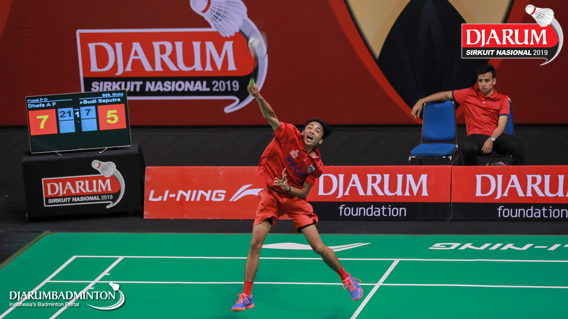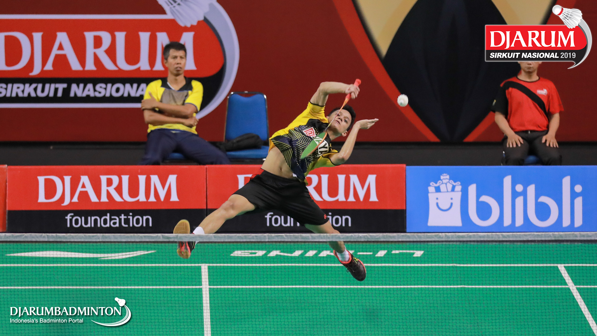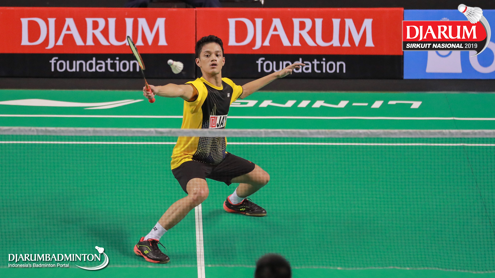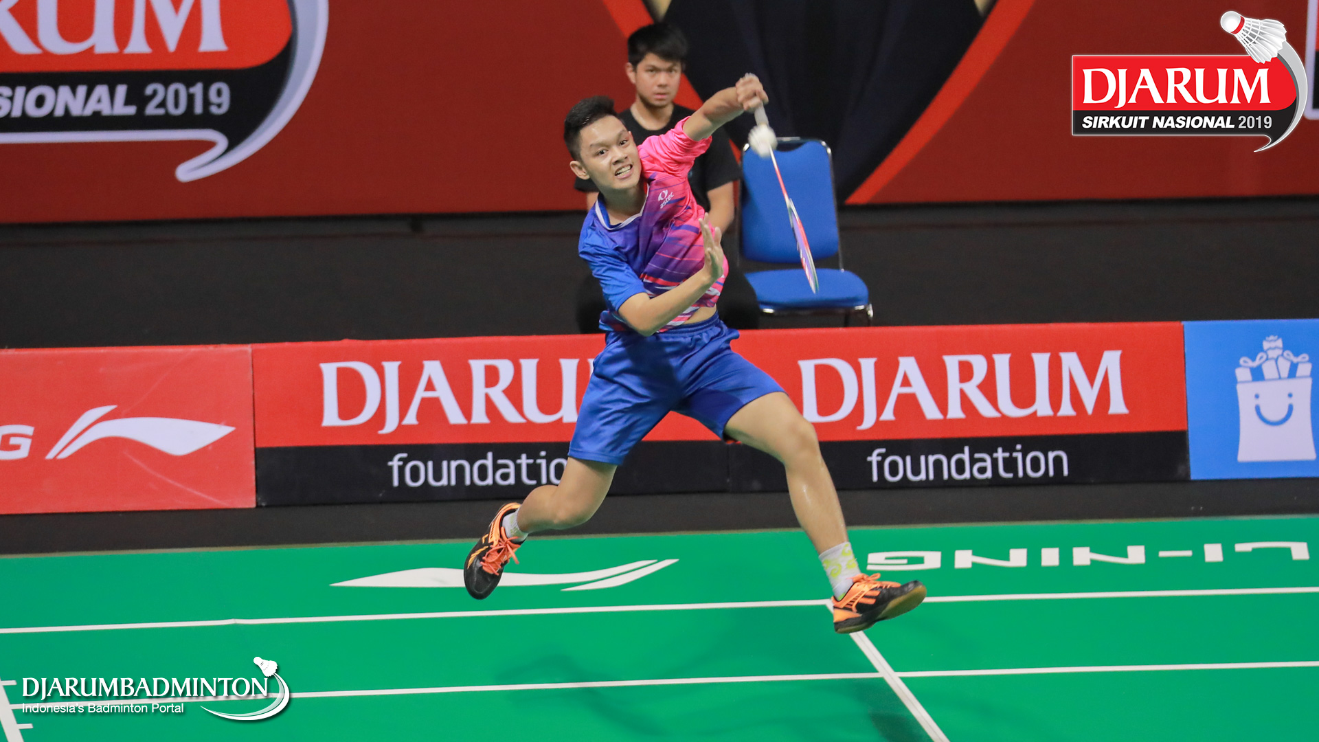Aivin Setiajaya (Asep Suharno Badminton Academy, Jakpus) melepaskan serangan