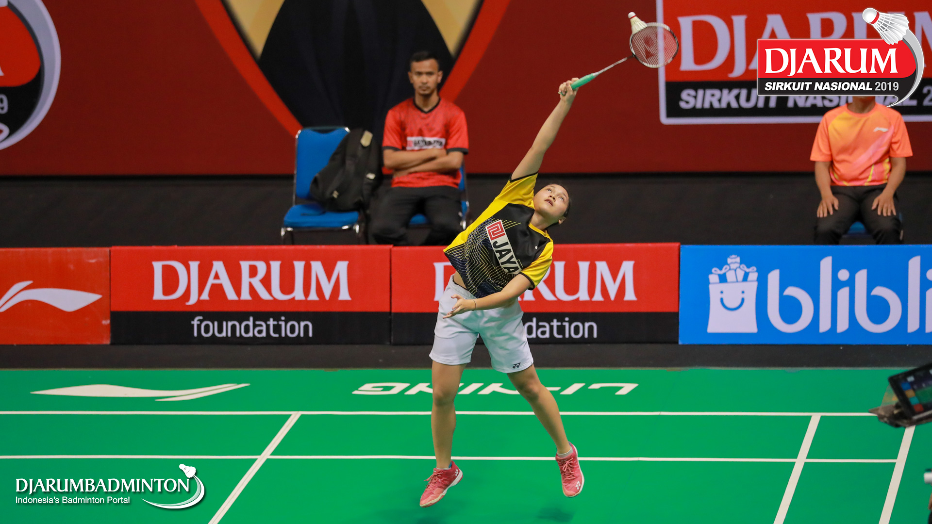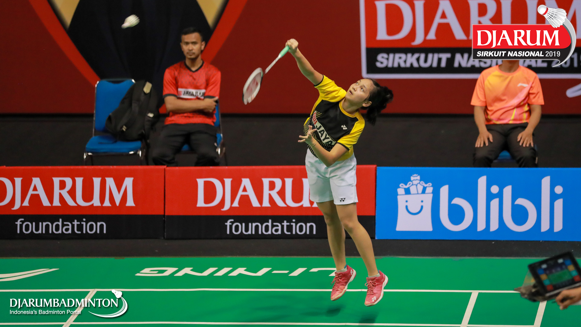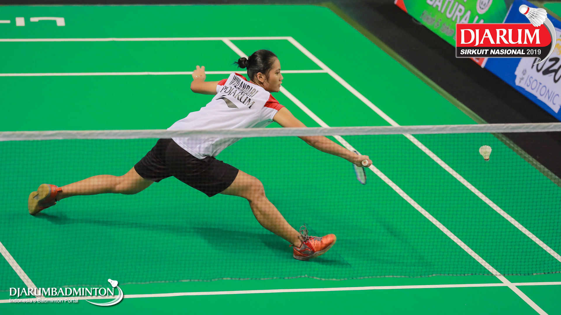 Ovilia Riza Wulandari (PB Djarum, Kudus) berusaha menggapai serangan