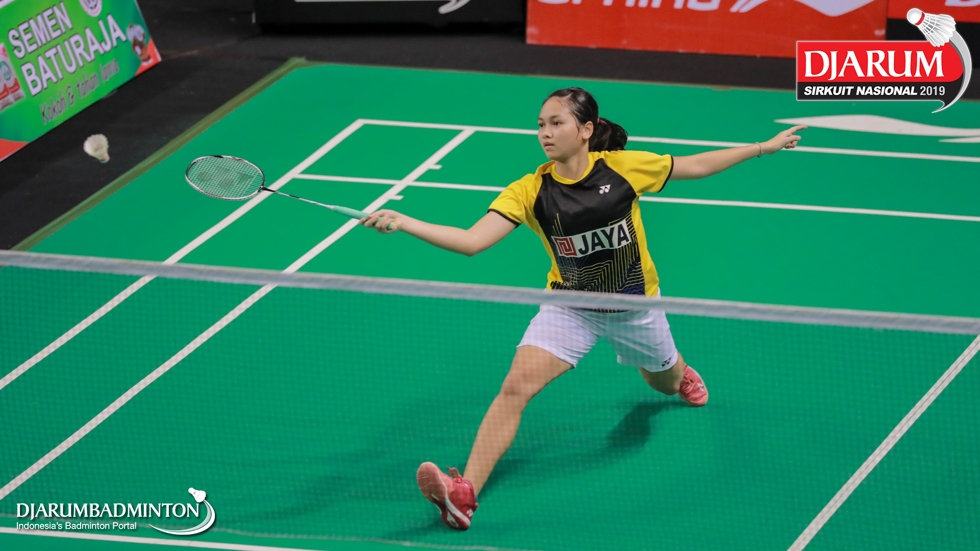 Olivia Chelin Maria Kambey (Jaya Raya Jakarta) bersiap menyambut shuttlecock