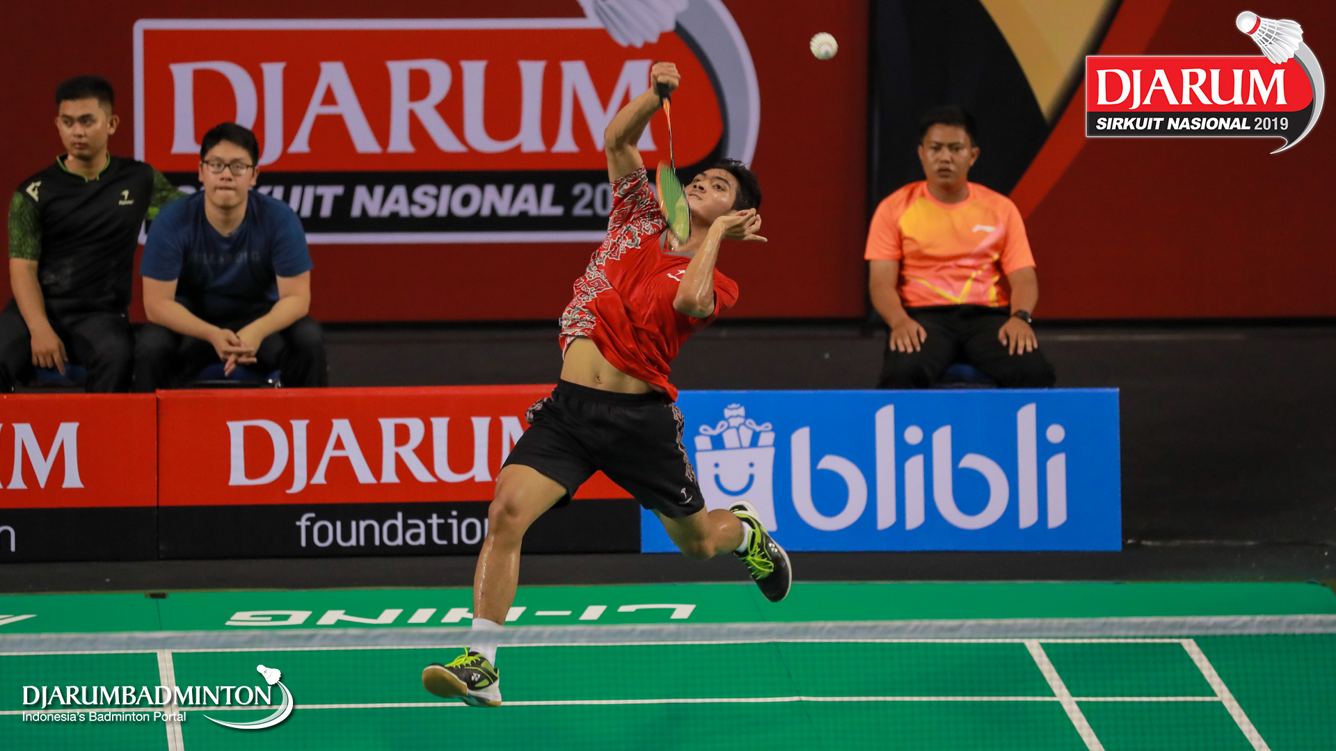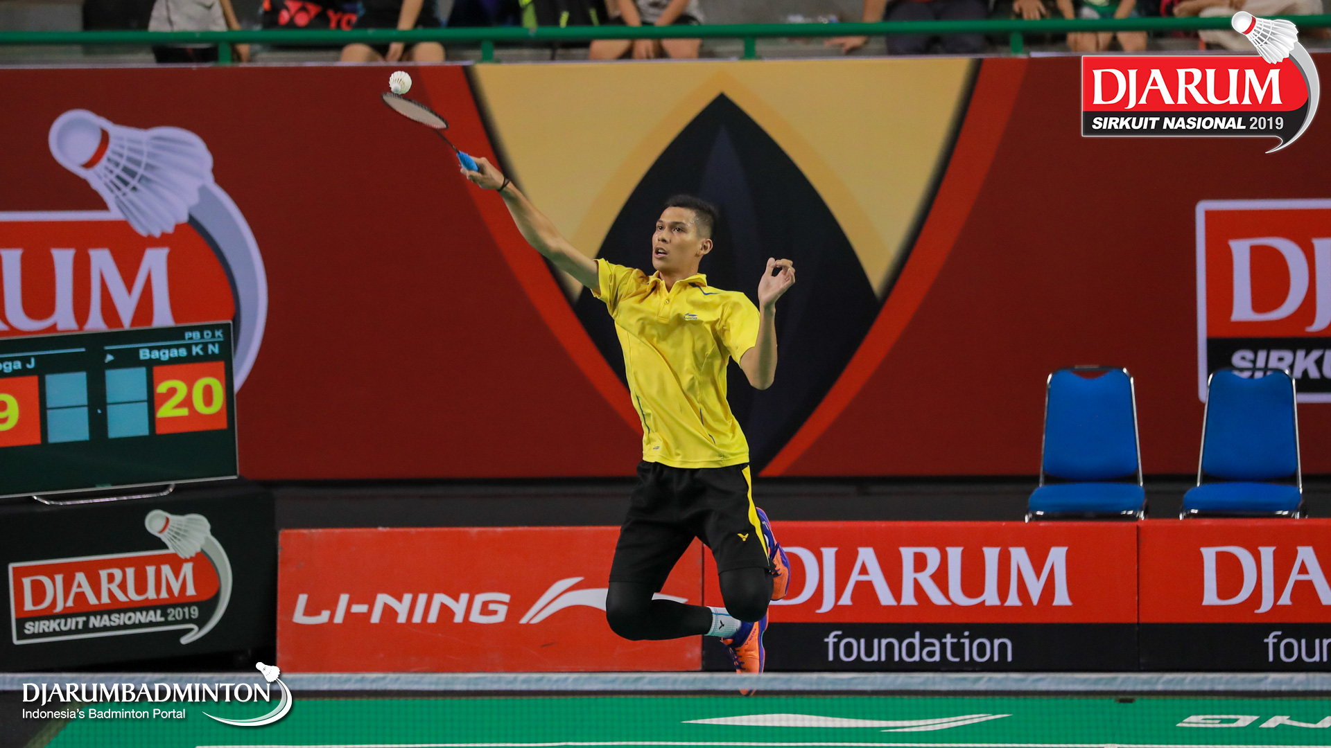 Bagas Kristianto Nugroho (PB Djarum, Kudus) mengembalikan shuttlecock