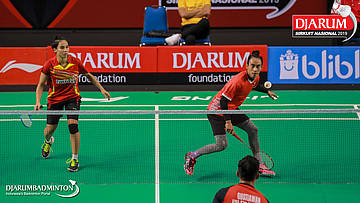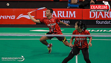 Yantoni Edy Saputra+Rosyita Eka Putri Sari (PB Djarum, Kudus) melepaskan serangan