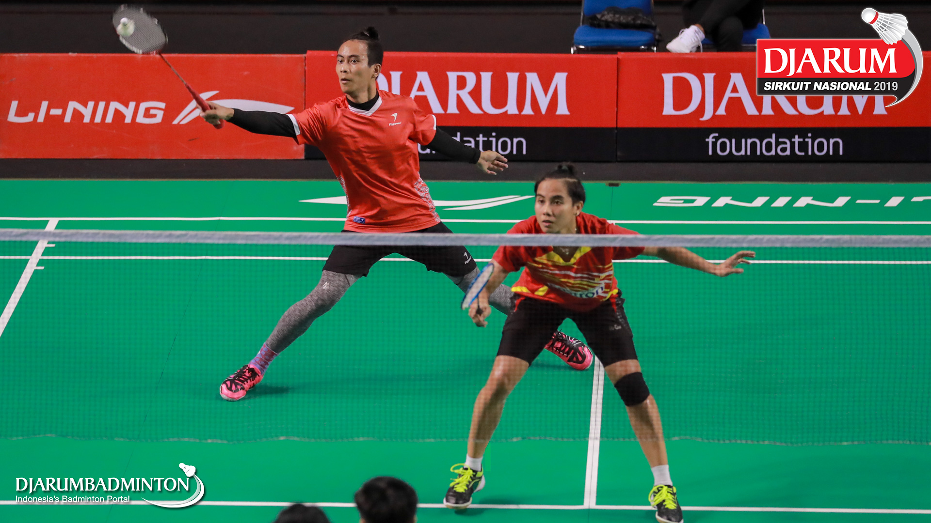 Amri Syahnawi+Pia Zebadiahbernadet (Jaya Raya Jakarta) berusaha menahan serangan