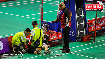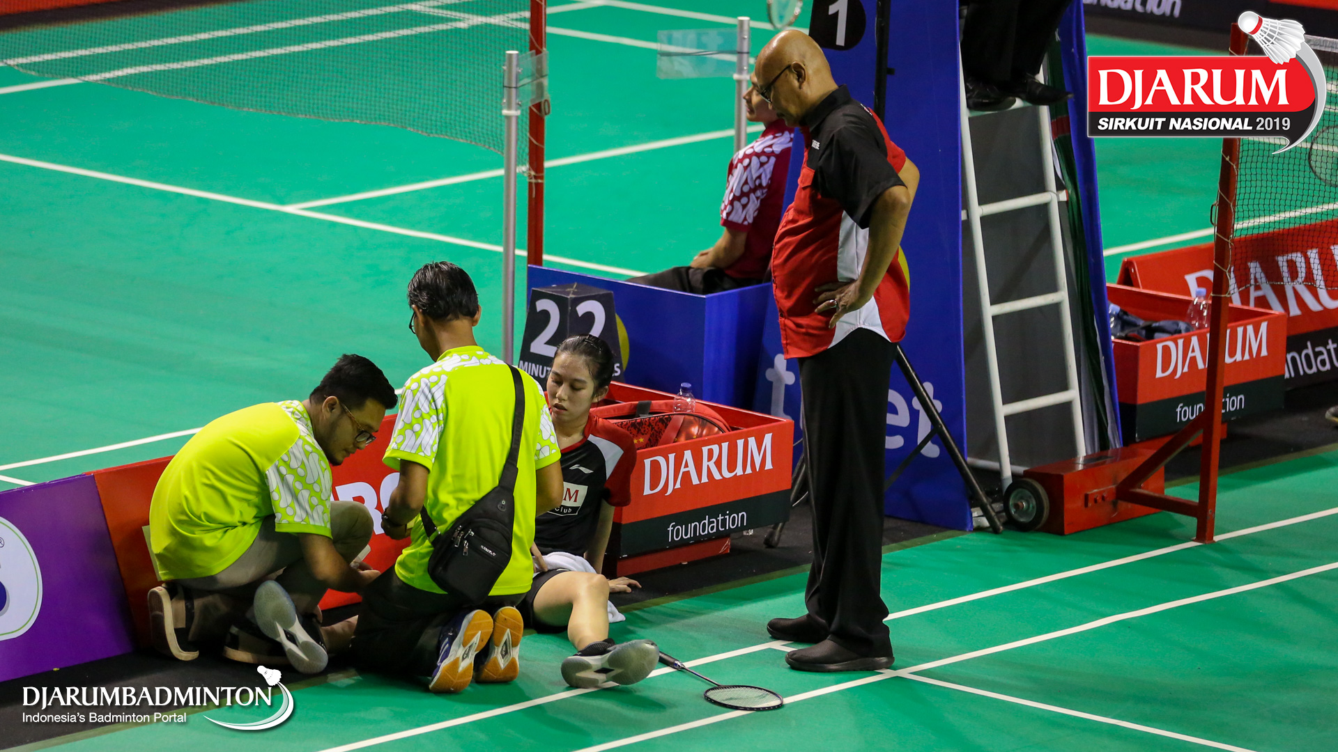 Ivanna Celia Handoyo (PB Djarum, Kudus) saat dalam penanganan medis