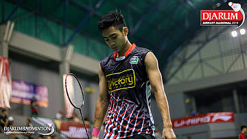 Andi Fadel Muhammad R (PB Victory Bogor, Jaktim) mengembalikan shuttlecock