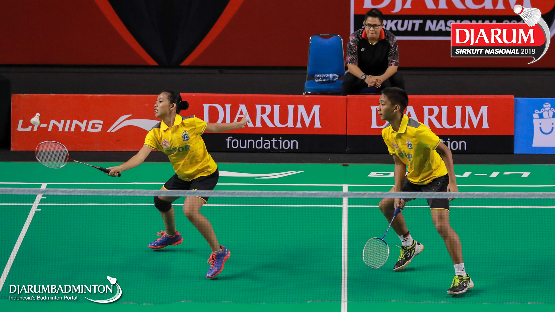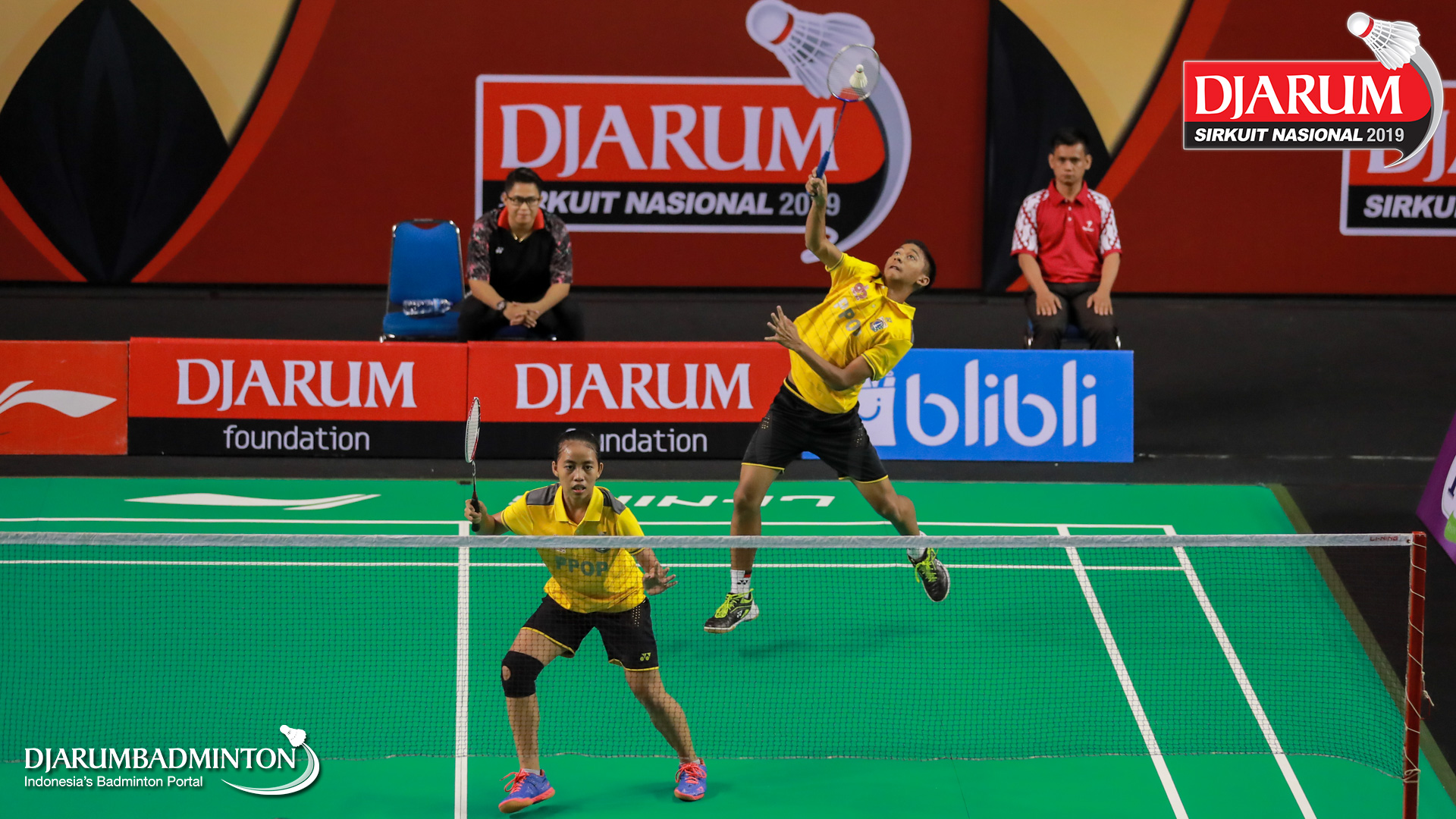 Adjie Sendang Nugroho+Sakira Salsabila (Pusat Pelatihan Olahraga Pelajar) berusaha menahan serangan