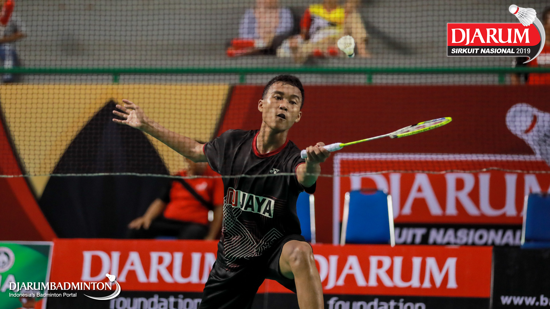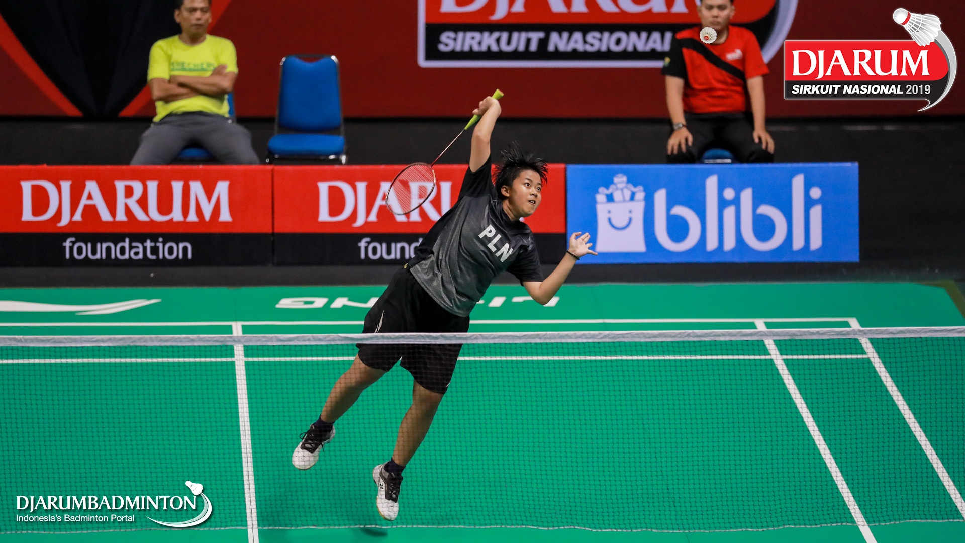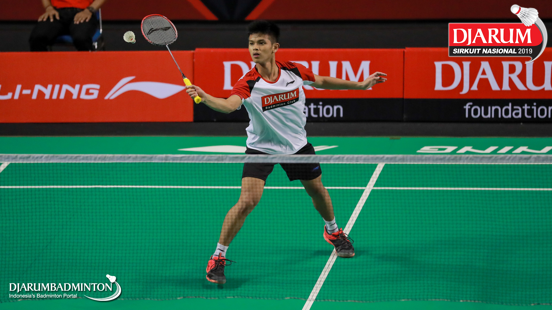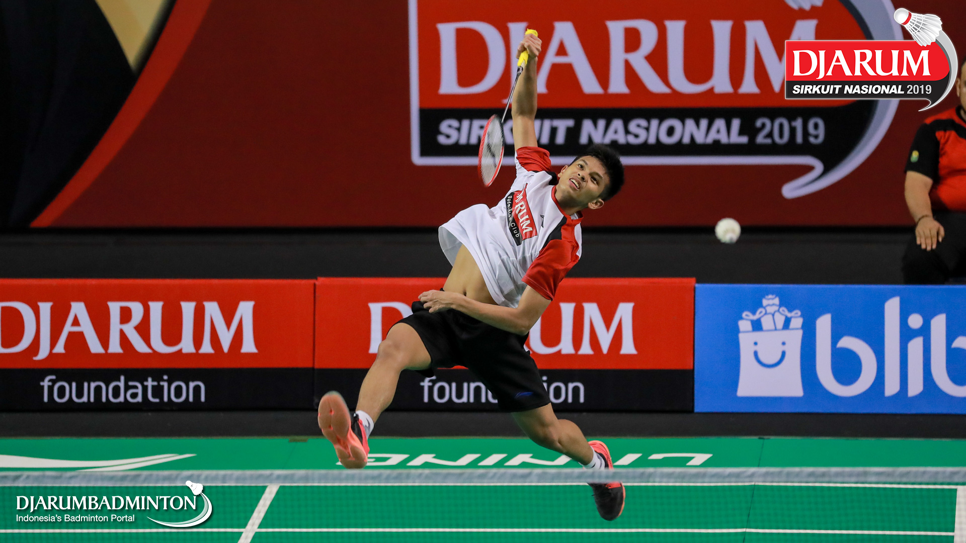 Aldy Firmanda (PB Djarum, Kudus) melepaskan serangan