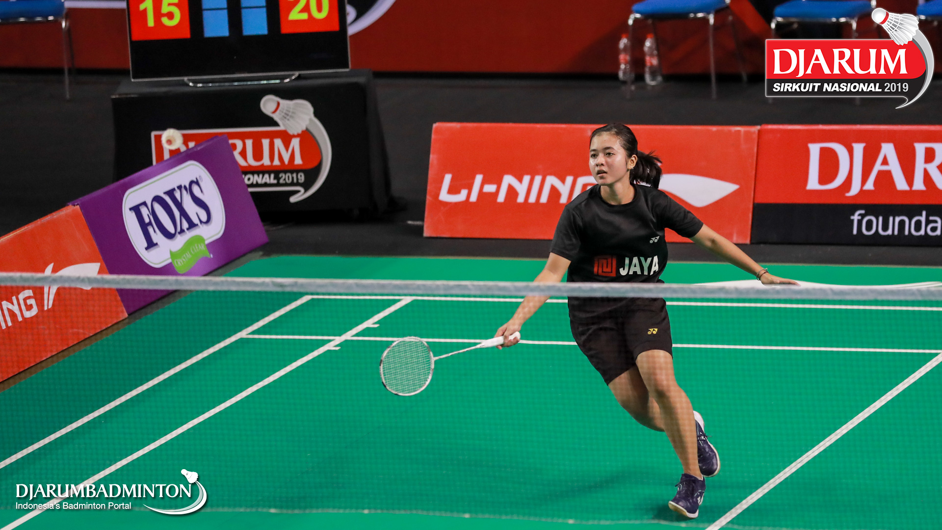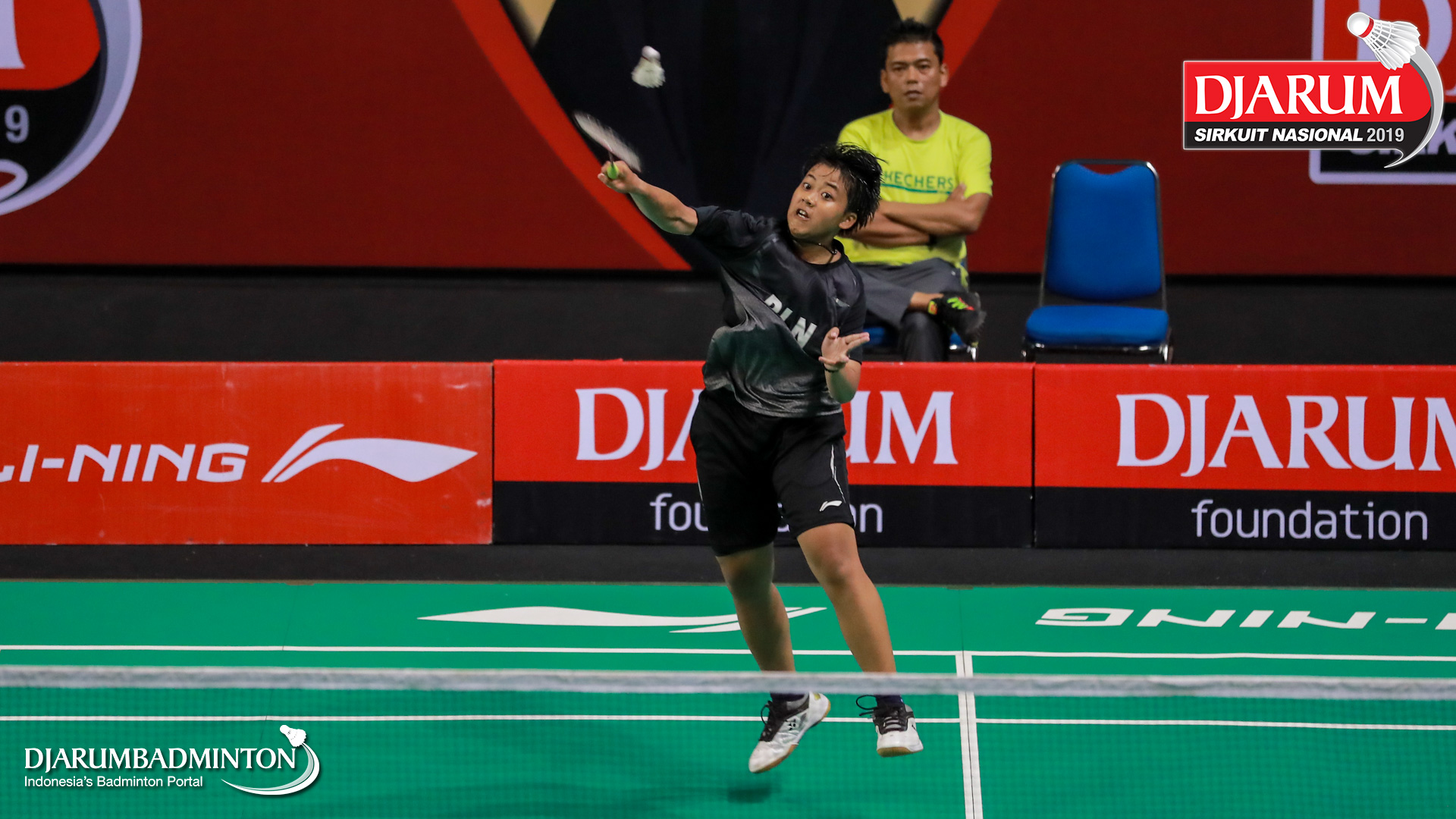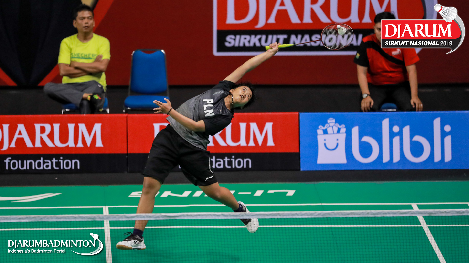 Hilda Nur Fadilah (Sangkuriang Graha Sarana PLN Bandung) bersiap menyambar shuttlecock
