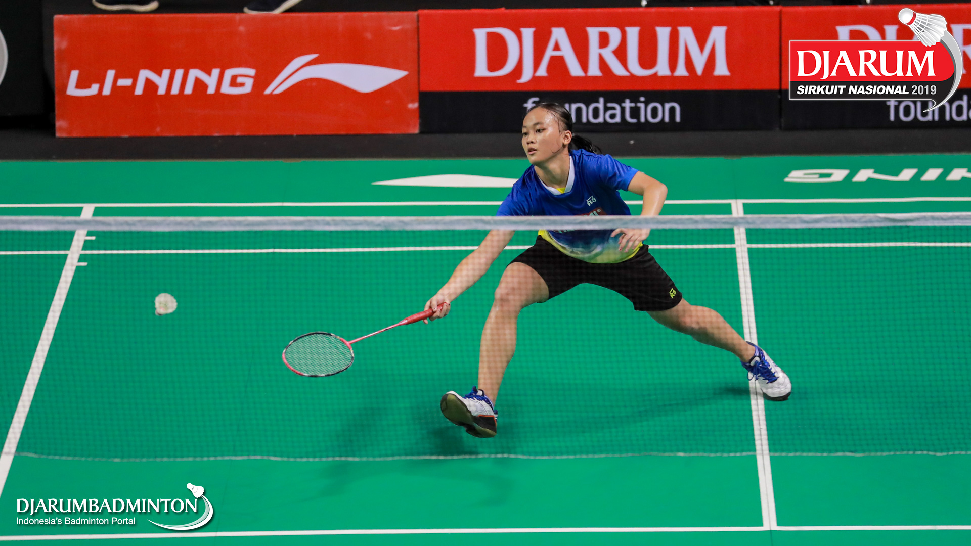 Angelica Febriana Timporok (Mutiara Cardinal, Bandung) berusaha menggapai pengembalian
