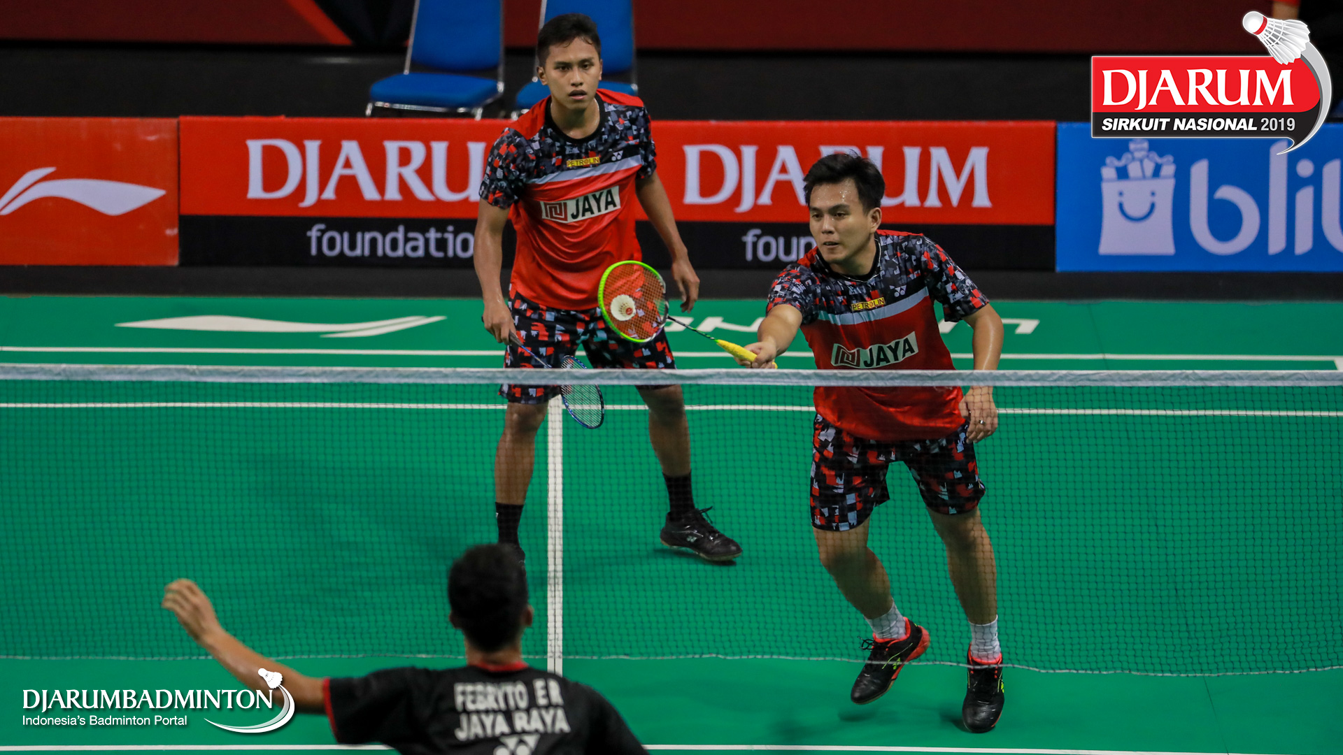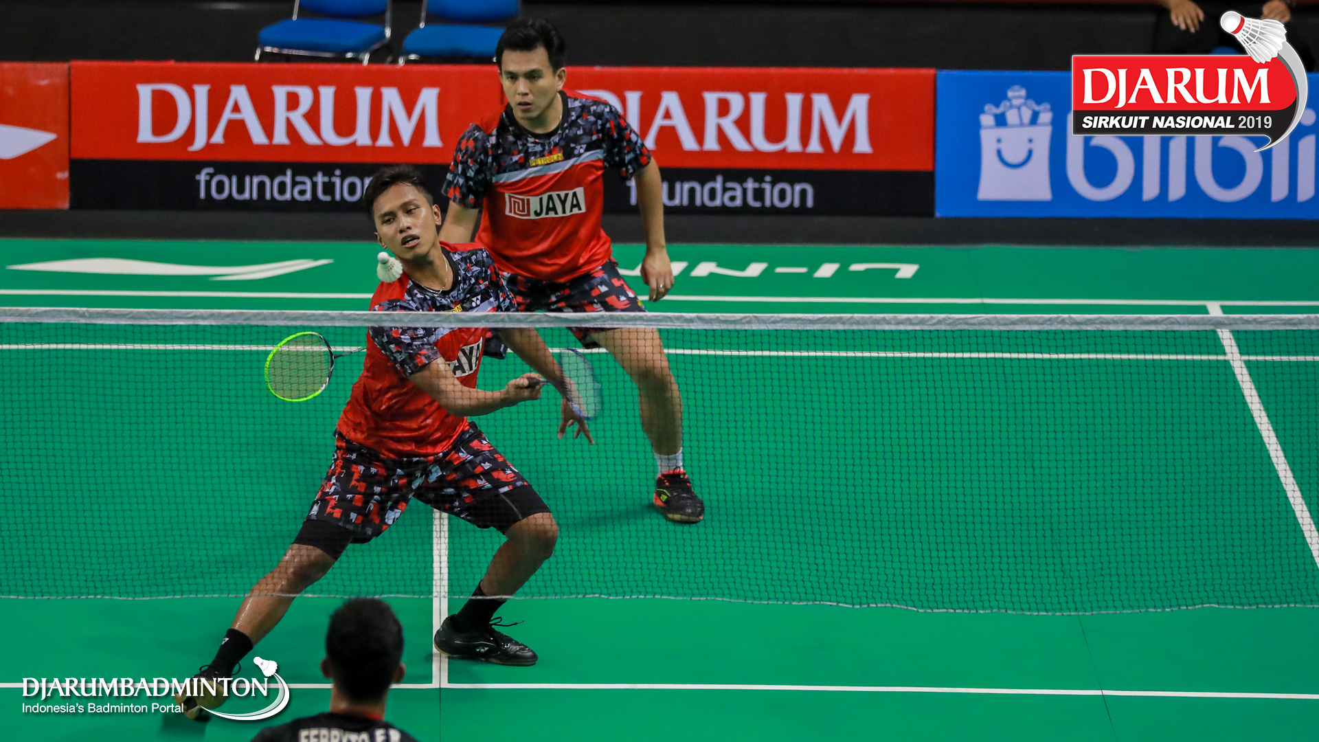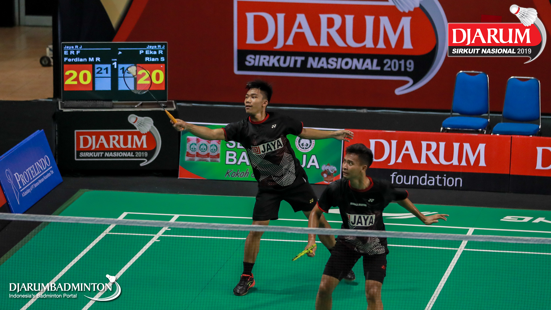 E Randhy Febryto+Ferdian Mahardika R (Jaya Raya Jakarta) menyambut shuttlecock