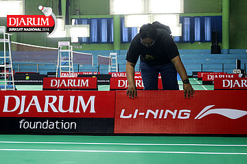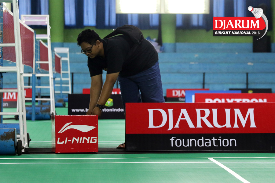 Suasana persiapan di GOR PBSI Sumatera Selatan, Medan.