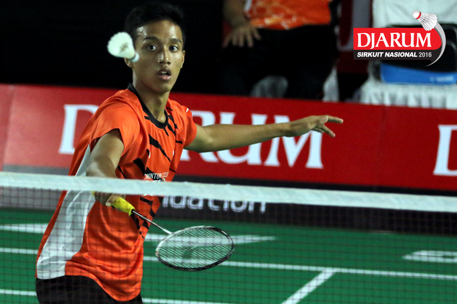 Alberto Alvin (Djarum Kudus) melepaskan serangan.