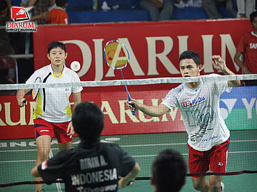 Taufik Hidayat dan Novan beraksi di Ganda Putra Dewasa