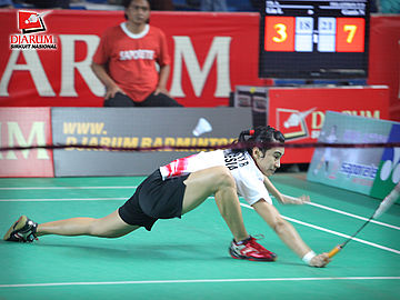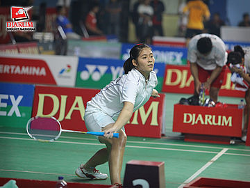 Elizabeth Purwaningtyas menatap serangan kok lawan