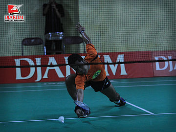 Yoga Pratama (PB.Tangkas Alfamart) menjemput shuttlecock