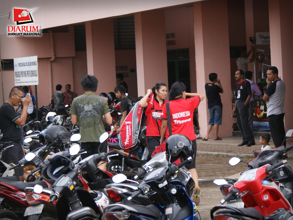 putra dan putri PB Djarum berkumpul menunggu pembagian hadiah