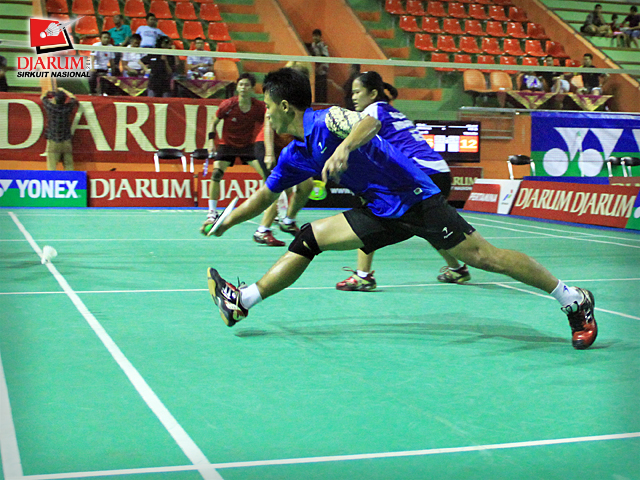 Pasangan ganda campuran PB Pelabuhan II, Samantha Lintang/A. Sahibul Wafa berusaha mengembalikan kok ke arah pasangan Ardiansyah Putra/Devi Tika Permatasari dalam perempat final ganda dewasa campuran Djarum Sirkuit Nasional Bali di GOR Purna Krida