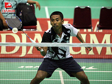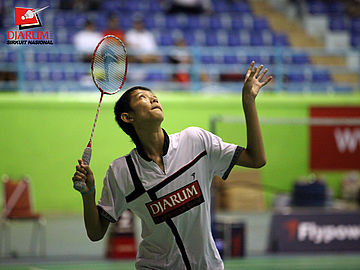 M. Bayu Pangisthu (PB Djarum) di babak penyisihan Tunggal Dewasa Putra Djarum Sirkuit Nasional (Sirnas) Pangkalpinang