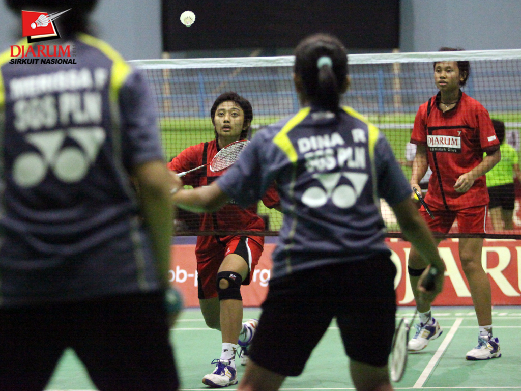 Ravenska Cintya A. dan Uswatun Khasanah (PB Djarum) di babak penyisihan Ganda Remaja Putri Djarum Sirkuit Nasional (Sirnas) Pangkalpinang