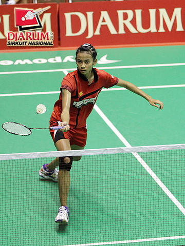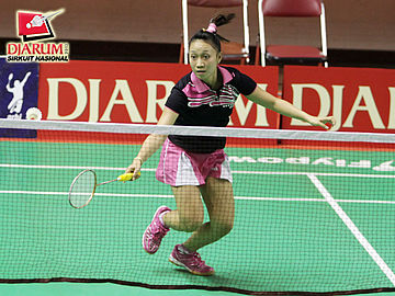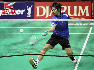 Dinar Dyah (PB Djarum Kudus) menyambut serve dari Melicia Lumiawan (PB 21 Jakarta).