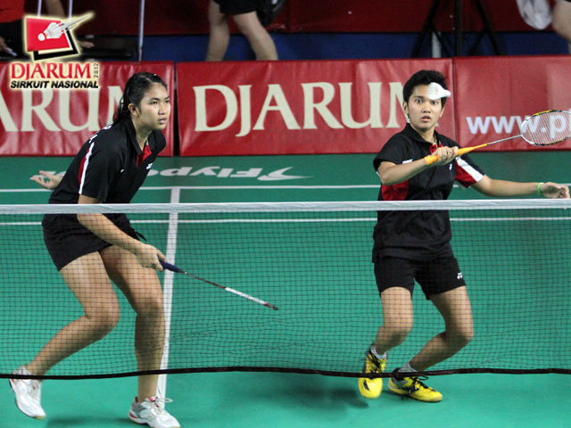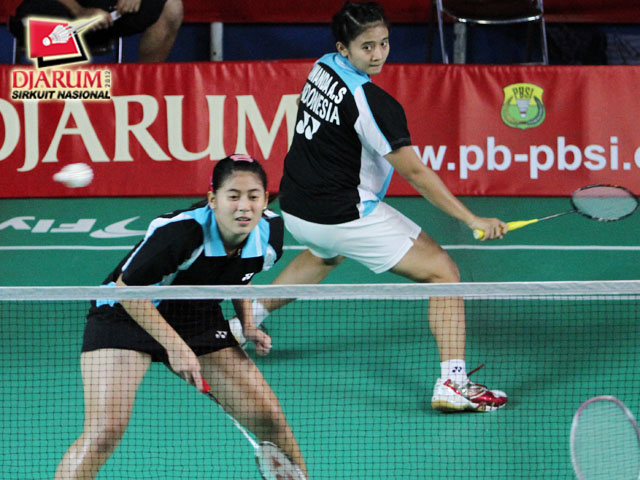 Pasangan ganda dewasa putri, Deariska Putri Medita dan Ririn Amelia yang sedang bertanding melawan pasangan Melati Daeva Oktaviani / Rosyita Eka Putri Sari (Djarum Kudus).