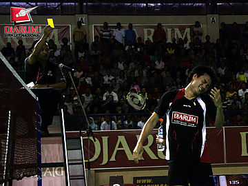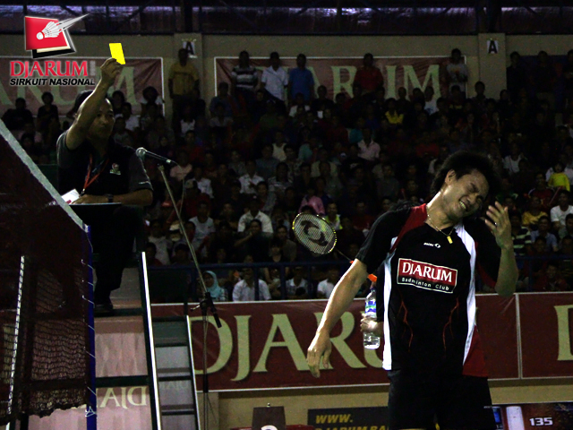 Rendra Wijaya (PB Djarum) mendapatkan kartu kuning dari wasit)