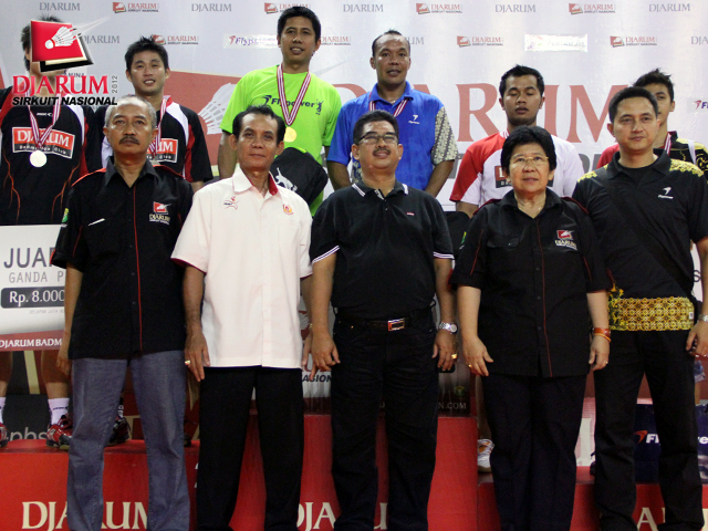Juara tunggal dewasa putra berpose bersama usai pembagian hadiah.