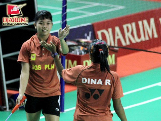 Pasangan Dina Rahayu/ Warih (SGS PLN) melakukan selebrasi