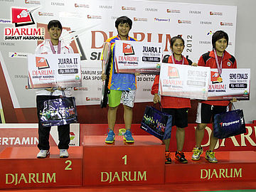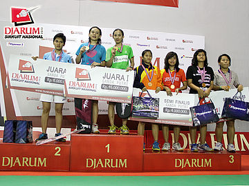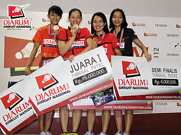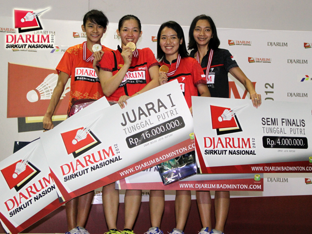 Empat peraih juara tunggal putri dewasa disapu bersih PB Djarum Kudus. (dari kiri) Dinar, Febby, Ana dan Rosaria).