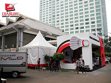 Spanduk Djarum yang Menghiasai Pagar Depan Hall Badminton Asia Afrika Jakarta