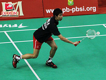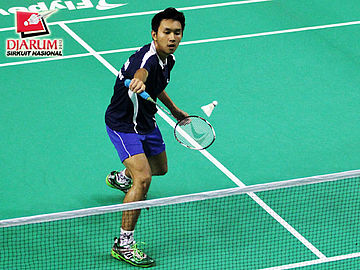 Setyaldi dari Guna Dharma yang sedang bertanding melawan Ihsan Maulana Mustofa dari Djarum Kudus.