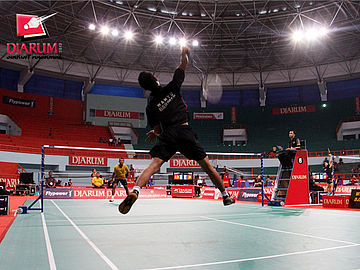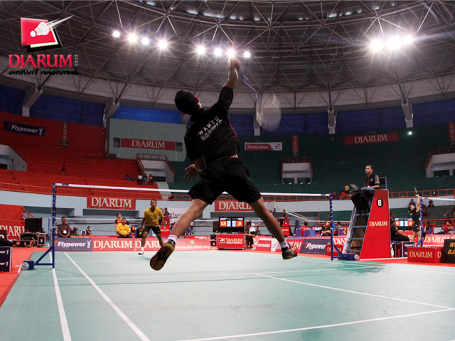 Dengan Sekuat Tenaga Wahyu (Garmen Soppeng) Menangkis Shuttle Cock yang Diberikan oleh Rifan Fauzin Ivanudin (Pelatprov DKI)