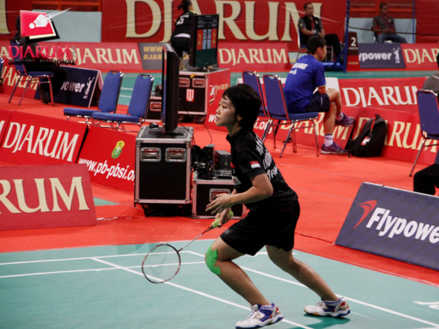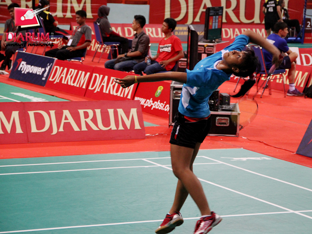 Marsa Indah Salsabila (Djarum Kudus) siap Menerima Shuttle Cock dari lawannya, Nindi Octaviani (PPLP DKI Jakarta)