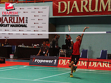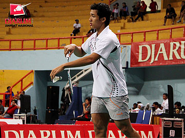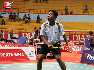 Tuan rumah, Zulpikar (HIKMA Makassar), Sedang Menghadapi Pemain dari Jakarta, Jonathan Christie (Tangkas Alfamart Jakarta)