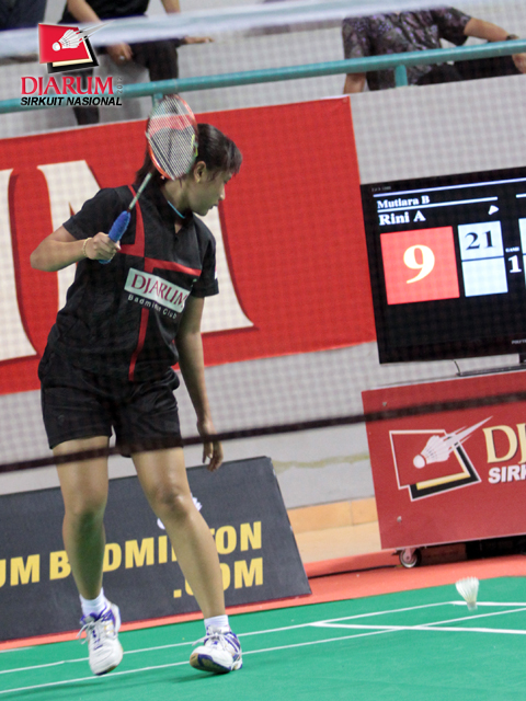 Ekspresi Rena Asela, pemain PB Djarum nampak serius saat menunggu waktu yang tepat untuk mengembalikan bola Rini Andriani dari Mutiara Bandung yang menjadi lawannya dalam pertandingan ronde kedua Tunggal Taruna Putri.