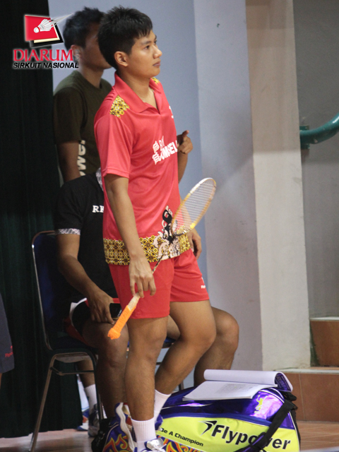 Ahmad Rivai dari Bank Sumsel Babel bersiap-siap masuk ke lapangan untuk bertanding melawan Yogi Irvans dari Angkasa Prestasi Gemilang.