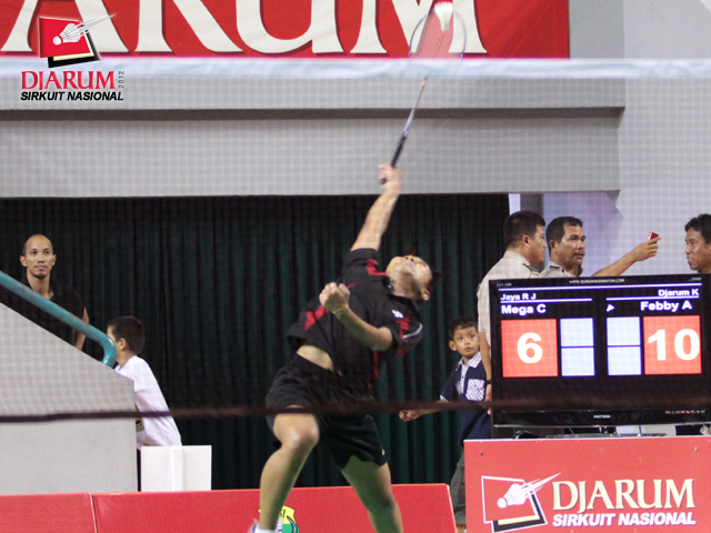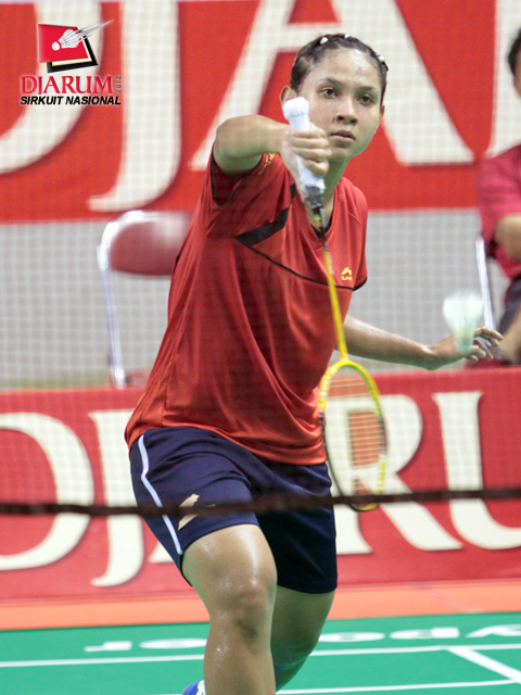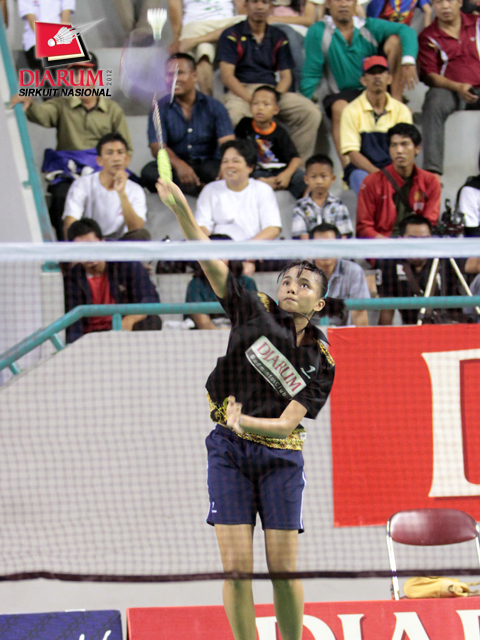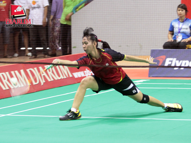 Tike Arieda dari Jaya Raya Suryanaga dengan sigap mengejar kok saat bertanding melawan Desy Nidya dari Angkasa Prestasi Gemilang. Tike memenangkan pertandingan dengan skor 21-18/21-18.