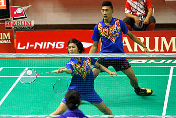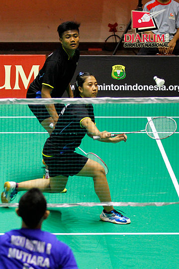 Rafli Rizki/Novalita Anggraeni (Mutiara Bandung) bersiap menyambut pengembalian dari pasangan Egy/Inten Ratnasari (SGS PLN).