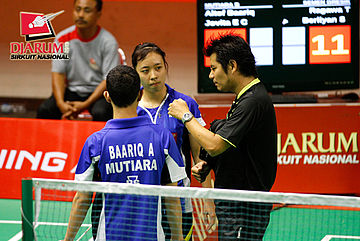 Altof Baariq/Jovita Evania (Mutiara Bandung) saat mendapatkan pengarahan dari pelatih.