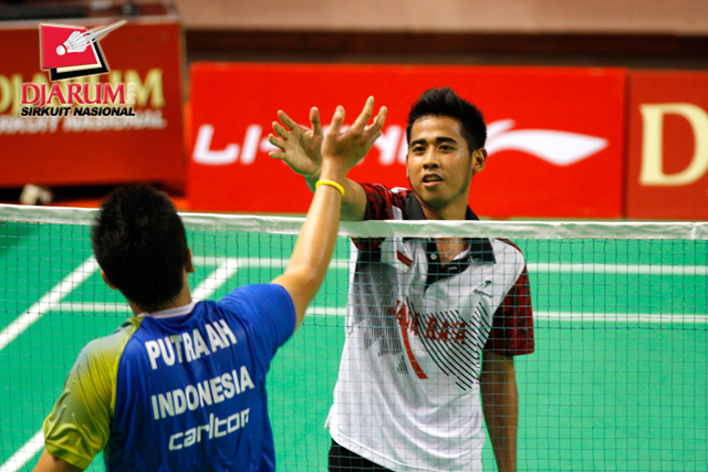 Hermansyah (Jaya Raya) dan Ariyanto Hariyadi Putra (JR Enkei) saling bersalaman usai bertanding.